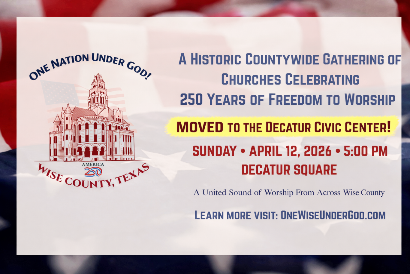 For the first time in Wise County’s history, churches from across our county are coming together in one unified gathering to celebrate "faith, family, and freedom as part of America’s 250th birthday celebration.